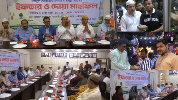 নিজস্ব প্রতিবেদকঃ পবিত্র মাহে রমযান উপলক্ষে বায়তুল মোকাররম লেদার ব্যবসায়ী সমিতির উদ্যোগে এক আন্তরিক পরিবেশে ইফতার ও দোয়া মাহফিল অনুষ্ঠিত হয়েছে। গত ২রা মার্চ, সোমবার বায়তুল মোকাররম ব্যবসায়িক গ্রুপের অফিস